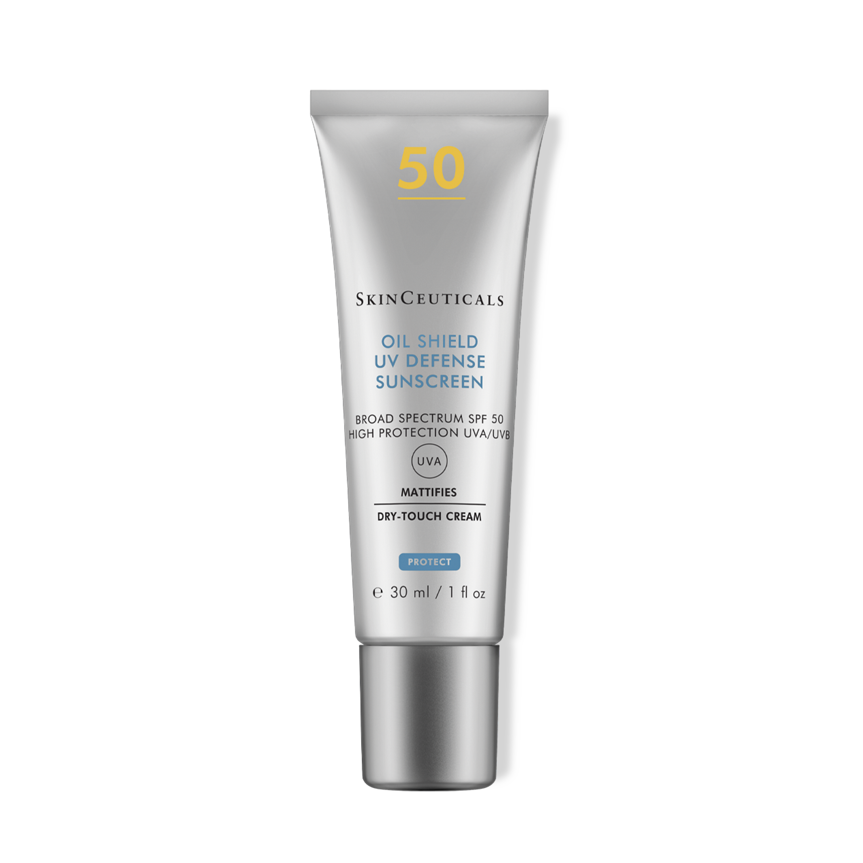 El protector solar de skinceuticals Perú especial para piel grasa Oil Shield Uv Defense es un fotoprotector matificante con acabado seco que reduce el exceso de grasa además de ofrecer una muy alta fotoprotección UV.